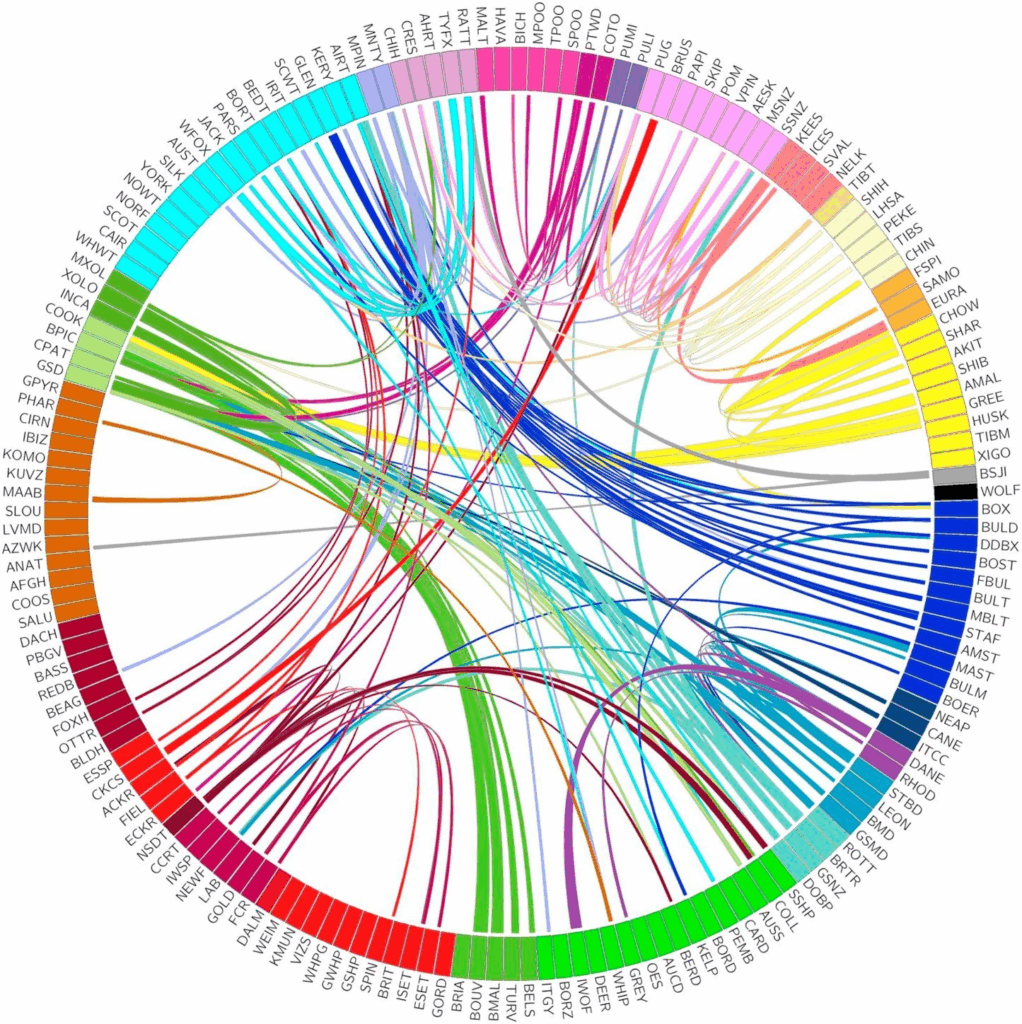 Noin joka kolmannella näistä 117 rodusta oli yhteys vain yhteen muuhun rotuun kehityslinjansa ulkopuolella. Näin ollen yli puolet roduista, jotka muodostivat tutkimuksen 23 kehityslinjaa, jakavat laajasti haplotyyppejä korkeintaan yhden kehityslinjansa ulkopuolisen rodun kanssa. Nämä rodut näyttävätkin syntyneen pääasiassa alkuperäiseen perustajapopulaatioon perustuvan valinnan kautta sen sijaan, että ne olisi kehitetty rotujen välisillä risteytyksillä.